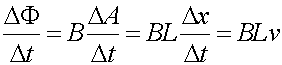 The area which equals Lx, where x is the position of the bar at some time, changes as Lv. We can then take the expression for the voltage above and write it in terms of the rate change of the flux. The last term is indeed the voltage around the loop derived in the previous page.