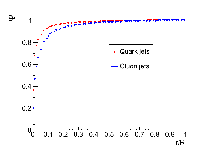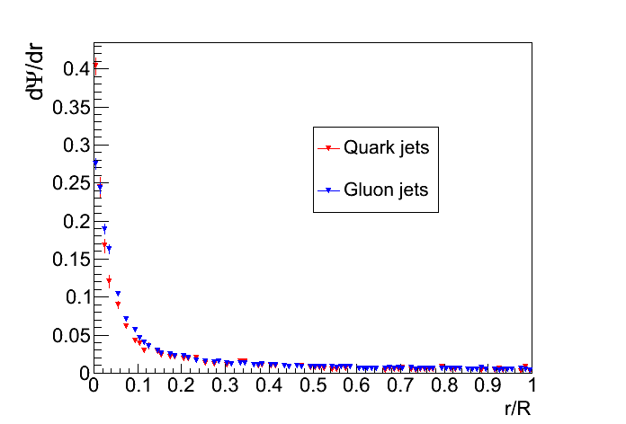 | Transverse momentum profile for Quark/Gluon jets 90GeV < pt < 110GeV 0.0 < eta < 0.5 | |