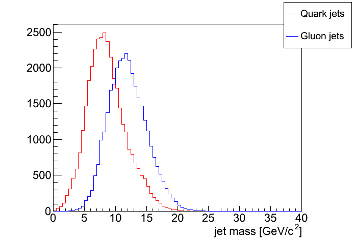 | Jet mass distributions for Quark/Gluon jets 90GeV < pt < 110GeV | |